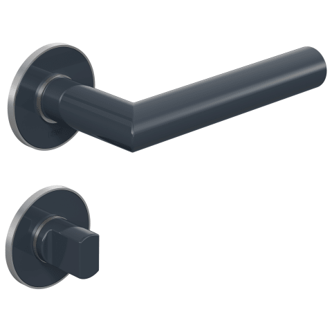 Frei-Besetzt-Garnitur mit flachen Rosetten nach DIN 18255 und DIN EN 1906 und Inlay aus farbigem Polyamid, bestehend aus: Türdrücker Modell 162.21PC in Gehrungsform aus Polyamid hochglänzend, mit durchgehendem Stahlkern bis in das Drückerende, durchgängig eingefärbt, Durchmesser 21,3 mm, mit Ansatzführung und Gewindestift M5 als zusätzliche Fixierung der Türdrücker mit dem Vierkantstift zur optimalen Kraftübertragung in das Türblatt. Flache Drücker- und WC-Rosetten, 306.23XI..., rund, Durchmesser 52 mm, 4,0 mm hoch. Verdeckte, lockerungssichere Verbindung: Drücker und Rosetten sind festdrehbar vormontiert, sowie in das Türblatt eintauchende Stützzapfen. Einfache und schnelle Montage durch Einrasten vormontierter Baugruppen. WC-Ausführung mit Notöffnung mittels Münze und wahlweise mit bzw. ohne Schauscheibe (Anzeige rot/grün) auf der Außenseite. Material der Rosetten Edelstahl (1.4301) matt oder poliert, Rosetteneinleger aus Polyamid hochglänzend Ausgelegt und geprüft für den Objektbereich, Gebrauchskategorie nach DIN EN 1906 - Klasse 4 Dauerhaftigkeit: Klasse 7 Türmasse: keine Klassifizierung festgelegt Feuerbeständigkeit: Klasse 0 Sicherheit: Klasse 0 Korrosionsbeständigkeit Klasse: 4 Einbruchschutz: Klasse 0 Ausführungsart: U Artikel: HEWI 162PCIX02230 0254 0001 Notöffnungart: FBM Frei-Besetzt mit 0257 0010 Riegelvierkant: 8 mm 0260 0002 Werkstoff Riegelvierkant: Stahl 0261 0003 Vierkant: 8 mm 0285 0009 Türstärke TS1: 43,1 - 48,0 mm 1984 0012 Farbe Inlay bicolor: 92 anthrazitgrau 1990 0001 Oberfläche Edelstahl Bicolor: Edelstahl matt FB 92 Farbe: anthrazitgrau