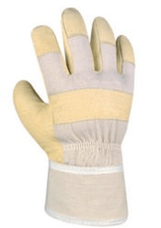 Universalhandschuhe Nr. 1134 "288 PAA". Schweinsvollleder, gelb, gefüttert, weißer Drell. VPE = 12 Paar