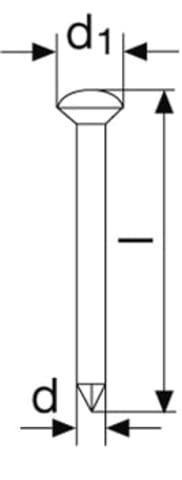 Bildernägel, Stahl, gehärtet, gebläut, extra großer Bildernagelkopf. Typische Anwendungsbereiche: Befestigung von Bildern, Wandschmuck oder Dekorationsgegenständen, Treppenstoßkanten, Sockelleisten,