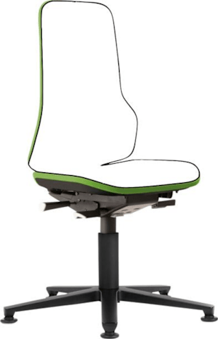 Hinweis: Die innovative Stuhl- und Polster-Kombination im 1+1-System sorgt für Flexibilität, Nachhaltigkeit und eine perfekte Anpassung an den jeweiligen Arbeitsbereich. Wichtig – Der Stuhl ist nur mit Polster-Element besitzbar! • Mit großflächigen Kunststoff-Bodengleitern