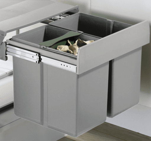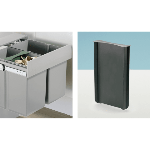 • Für Korpusbreite min. 500 mm• Fassungsvermögen 30 Liter• Einfache und schnelle Bodenmontage• Auszugssystem mit Vollauszug• Die geringe Einbautiefe bietet Platz für Siphon, Wasseranschlüsse und