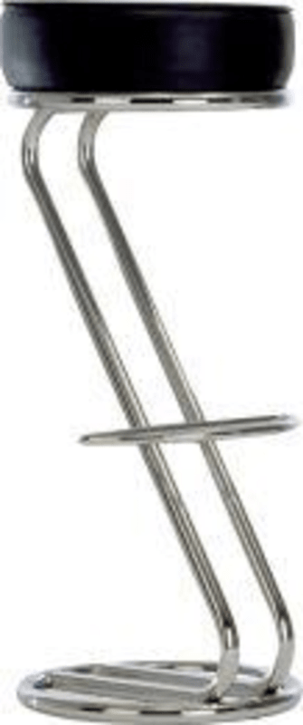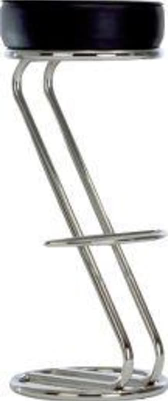 Barhocker Modell ZETA • Sitzfläche: Kunstleder, schwarz, gepolstert • Gestell: Stahlrohr, stabil, verchromt Lieferung: Karton mit 2 Stück. Hinweis: Klassisches Z-Design.