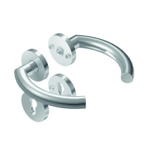 BKS Drückergarnitur OFFICE B-70000; Abdeckung: mit Rosetten; Form: rund; Vierkant: 8 mm; Material: Edelstahl; Befestigungsart: verdeckt verschraubt; Befestigungstechnik: mit Stütznocken; Benutzerklass