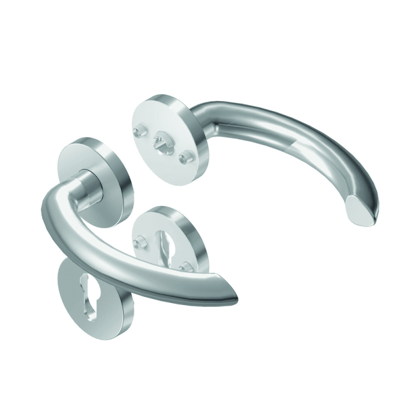 BKS Drückergarnitur LEGATO B-70000; Abdeckung: mit Rosetten; Form: rund; Vierkant: 8 mm; Material: Aluminium; Befestigungsart: verdeckt verschraubt; Befestigungstechnik: mit Stütznocken; Benutzerklasse: Klasse 4; Basis: Drückergarnitur; Ausführung: mit Drücker H5.0; Lochung: Profilzylinder gelocht; Farbton: naturfarbig; Oberfläche: lackiert; Anschlagrichtung: Drücker rechts/links verwendbar; Türstärke min.: 37 mm; Türstärke max.: 42 mm; Stärke Abdeckung: 9 mm; Durchmesser: 55 mm; Lagerung: festdrehbar,wartungsfrei; Norm: DIN EN 1906; Drückerform: gebogen; Drückerdurchmesser: 21 mm; Drückerhöhe: 70 mm; Drückerlänge: 155 mm; Drückerbefestigung: Vierkantstift; Befestigungssystem: Stiftverbindung; Türart: Abschlusstüren; Türwerkstoff: Holz,Stahl; Einsatzbereich: Objekttür; DIN-Richtung: DIN Links-Rechts
