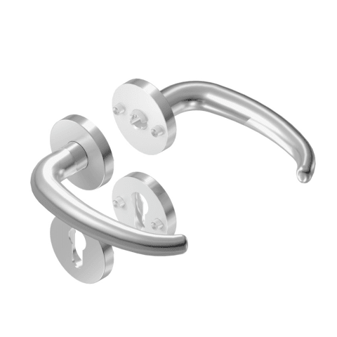 BKS Drückergarnitur TREMOLO B-70000; Abdeckung: mit Rosetten; Form: rund; Vierkant: 8 mm; Material: Edelstahl; Befestigungsart: verdeckt verschraubt; Befestigungstechnik: mit Stütznocken; Benutzerklasse: Klasse 4; Basis: Drückergarnitur; Ausführung: mit Drücker H6.0; Lochung: ohne Lochung; Farbton: edelstahl; Oberfläche: matt gebürstet; Anschlagrichtung: Drücker rechts/links verwendbar; Türstärke min.: 37 mm; Türstärke max.: 42 mm; Stärke Abdeckung: 9 mm; Durchmesser: 55 mm; Lagerung: festdrehbar,wartungsfrei; Norm: DIN EN 1906; Drückerform: gebogen; Drückerdurchmesser: 21 mm; Drückerhöhe: 70 mm; Drückerlänge: 145 mm; Drückerbefestigung: Vierkantstift; Befestigungssystem: Stiftverbindung; Türart: Abschlusstüren; Türwerkstoff: Holz,Stahl; Einsatzbereich: Objekttür; DIN-Richtung: DIN Links-Rechts
