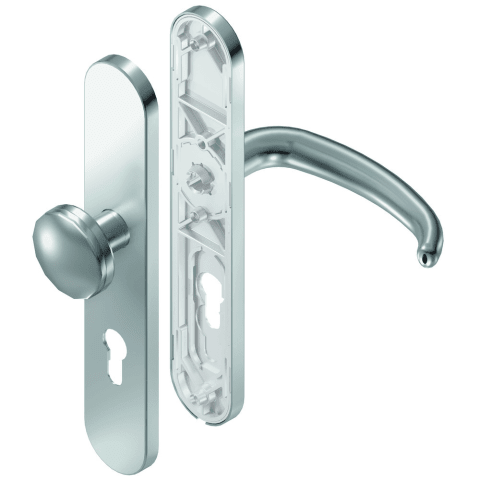 BKS Wechselgarnitur TREMOLO B-70220; Material: Edelstahl; Befestigungsart: verdeckt verschraubt; Befestigungstechnik: mit Stütznocken; Vierkant: 8 mm; Befestigungssystem: Stiftverbindung; Abdeckung: Langschild; Lagerung: festdrehbar,wartungsfrei; Form: oval; Benutzerklasse: Klasse 4; Einsatzbereich: Objekttür; Basis: Wechselgarnitur; Lochung: Profilzylinder gelocht; Entfernung: 72 mm; Türstärke min.: 37 mm; Türstärke max.: 42 mm; Knopfhöhe: 57 mm; Knopfform: rund; DIN-Richtung: DIN Links-Rechts; Norm: DIN EN 1906; Eigenschaft: Knopf fest auf Schild; Drückerdurchmesser: 21 mm; Breite: 45 mm; Länge: 252 mm; Oberfläche: matt gebürstet; Farbton: edelstahl; Türart: Abschlusstüren; Drückerbefestigung: Wechselstift; Anschlagrichtung: Drücker rechts/links verwendbar; Knopfdurchmesser: 50 mm; Türwerkstoff: Holz,Stahl; Drückerhöhe: 70 mm; Drückerlänge: 145 mm; Ausführung: mit Drücker H6.0,mit Rundknopf K1.0; Schildstärke außen: 9 mm; Schildstärke innen: 9 mm; Drückerform: gebogen