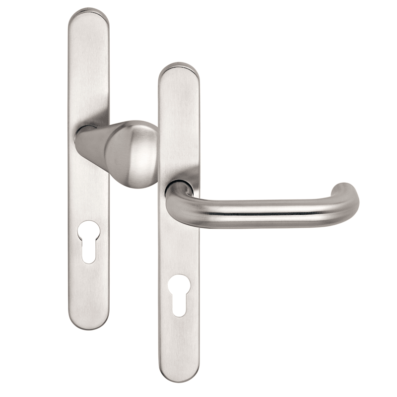 BKS Wechselgarnitur RONDO B-70340; Material: Edelstahl; Befestigungsart: verdeckt verschraubt; Befestigungstechnik: mit Stütznocken; Vierkant: 8 mm; Befestigungssystem: Stiftverbindung; Abdeckung: Langschild; Lagerung: festdrehbar,wartungsfrei; Form: oval; Benutzerklasse: Klasse 4; Einsatzbereich: Objekttür; Basis: Wechselgarnitur; Lochung: Profilzylinder gelocht; Entfernung: 92 mm; Türstärke min.: 65 mm; Türstärke max.: 80 mm; Knopfhöhe: 69 mm; Knopfform: gekröpft,rund; DIN-Richtung: DIN Links-Rechts; Norm: DIN EN 1906; Eigenschaft: Knopf fest auf Schild; Drückerdurchmesser: 21 mm; Breite: 32,7 mm; Länge: 252 mm; Oberfläche: matt gebürstet; Farbton: edelstahl; Türart: Rahmentüren; Drückerbefestigung: Wechselstift; Anschlagrichtung: Drücker rechts/links verwendbar; Knopfdurchmesser: 50 mm; Türwerkstoff: Aluminium,Stahl; Drückerhöhe: 70 mm; Drückerlänge: 145 mm; Ausführung: mit Drücker H1.0,mit Rundknopf K1.1; Schildstärke außen: 9 mm; Knopfbreite: 71 mm; Schildstärke innen: 9 mm; Drückerform: U-Form