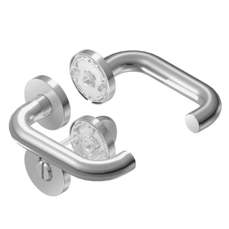 BKS Drückergarnitur RONDO B-70700; Abdeckung: mit Rosetten; Form: rund; Vierkant: 8 mm; Material: Aluminium; Befestigungsart: verdeckt verschraubt; Befestigungstechnik: mit Stütznocken; Benutzerklasse