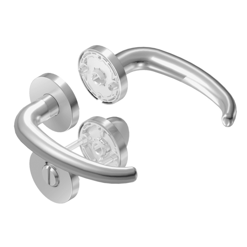 BKS Drückergarnitur TREMOLO B-70700; Abdeckung: mit Rosetten; Form: rund; Vierkant: 8 mm; Material: Edelstahl; Befestigungsart: verdeckt verschraubt; Befestigungstechnik: mit Stütznocken; Benutzerklas