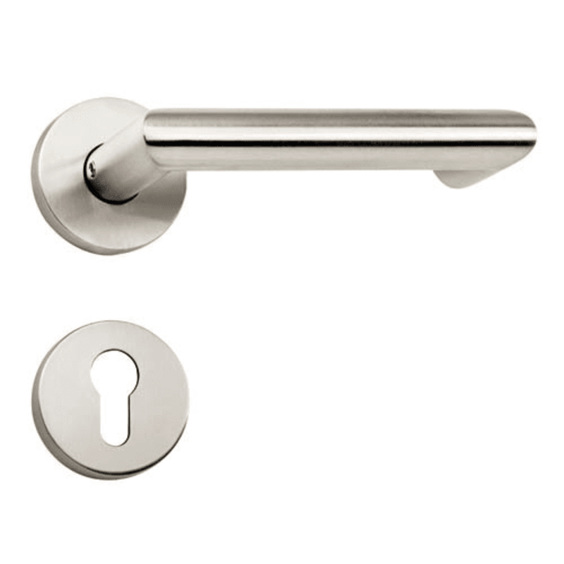 BKS Drücker-Halbgarnitur BELCANTO-PANIK B-72100; Material: Aluminium; Befestigungsart: verdeckt verschraubt; Befestigungstechnik: mit Stütznocken; Abdeckung: mit Rosetten; Form: rund; Benutzerklasse:
