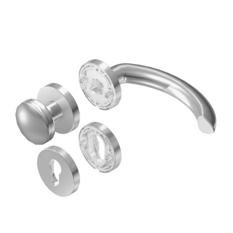 BKS Wechselgarnitur LEGATO B-72200; Material: Aluminium; Befestigungsart: verdeckt verschraubt; Befestigungstechnik: mit Stütznocken; Vierkant: 9 mm; Befestigungssystem: Stiftverbindung; Abdeckung: mi
