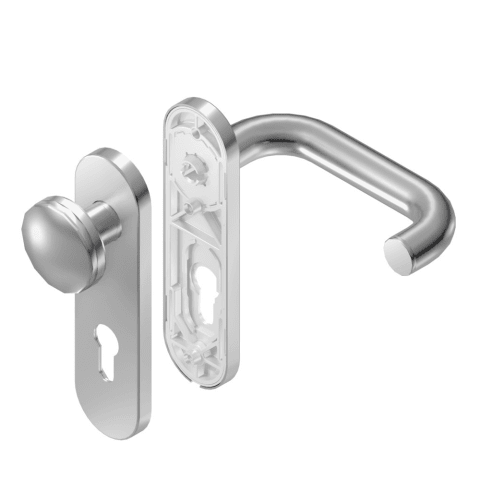 BKS Wechselgarnitur RONDO B-72210; Material: Aluminium; Befestigungsart: verdeckt verschraubt; Befestigungstechnik: mit Stütznocken; Vierkant: 9 mm; Befestigungssystem: Stiftverbindung; Abdeckung: Kur