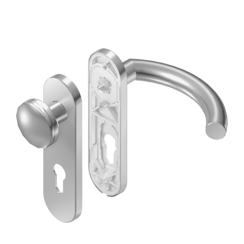 BKS Wechselgarnitur OFFICE B-72410; Material: Edelstahl; Befestigungsart: verdeckt verschraubt; Befestigungstechnik: mit Stütznocken; Vierkant: 9 mm; Befestigungssystem: Stiftverbindung; Abdeckung: Ku