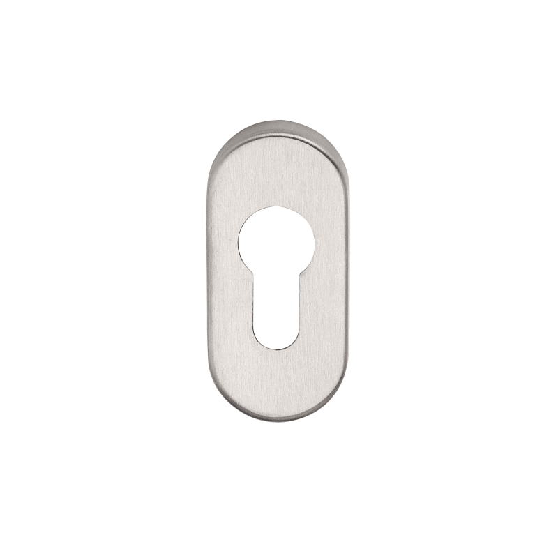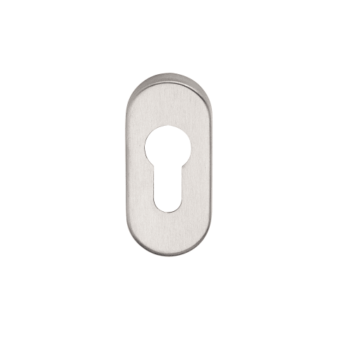 BKS Schlüsselrosette B-72730; Material: Edelstahl; Befestigungsart: verdeckt verschraubt; Befestigungstechnik: mit Stütznocken; Form: oval; Lochung: Profilzylinder gelocht; Stärke Abdeckung: 9 mm; Ein