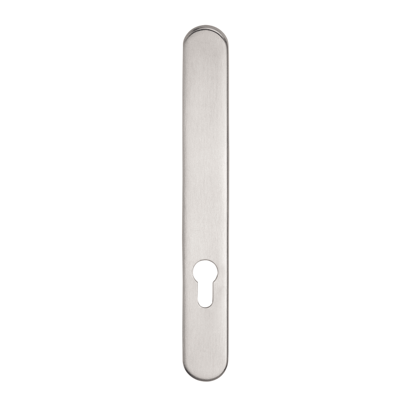 BKS Langschild B-72740; Material: Edelstahl; Befestigungsart: verdeckt verschraubt; Befestigungstechnik: mit Stütznocken; Form: oval; Benutzerklasse: Klasse 4; Einsatzbereich: Feuerhemmend; Basis: Lan