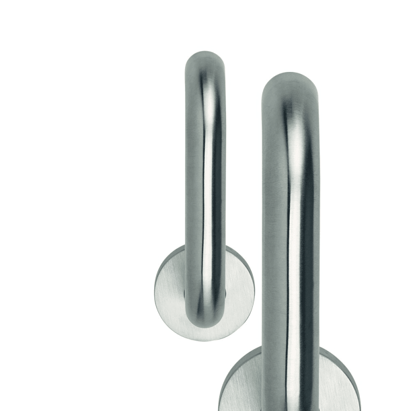 BKS Drehhebelgarnitur RONDO B-72900; Material: Edelstahl; Befestigungsart: verdeckt verschraubt; Befestigungstechnik: mit Stütznocken; Abdeckung: mit Drückerrosette,ohne Schlüsselrosette; Form: rund;