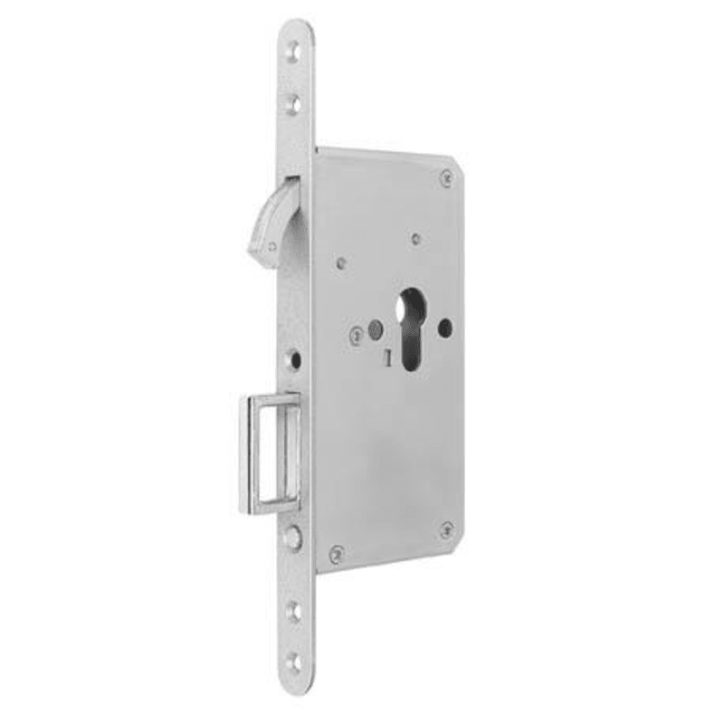 BKS, Zimmertür-Schiebetürschloss, Wechsel: mit Wechsel, Lochung: Profilzylinder gelocht, Dornmaß: 55 mm, Stulpform: Flachstulp, Stulpbreite: 20 mm, Stulpausführung: rund, Stulplänge: 260 mm, Stulpstärke: 3 mm, Stulpeigenschaft: beidseitig überstehend, Modellnummer: 0353, Ausführung: mit Zirkelriegel, mit Springgriff, Einzelteilmaterial Stulp: Stahl, Farbton Stulp: nickelsilber, Oberfläche Stulp: lackiert, Türausprägung: Türe stumpf, Türflügelanzahl: einflügelig, zweiflügelig, Ergänzung: Gangflügel, mit Auslöseknopf, Türart: Schiebetür, Einzelteilmaterial Zirkelriegel: Eisen, Oberfläche Riegel: verchromt, Schlosskasten: geschlossen, Einzelteilmaterial Schlosskasten: Stahl, Oberfläche Schlosskasten: verzinkt, Schlosskastenbreite: 84,5 mm, Schlosskastenlänge: 165 mm, Schlosskastenstärke: 15,5 mm, Türwerkstoff: Holz, Stahl