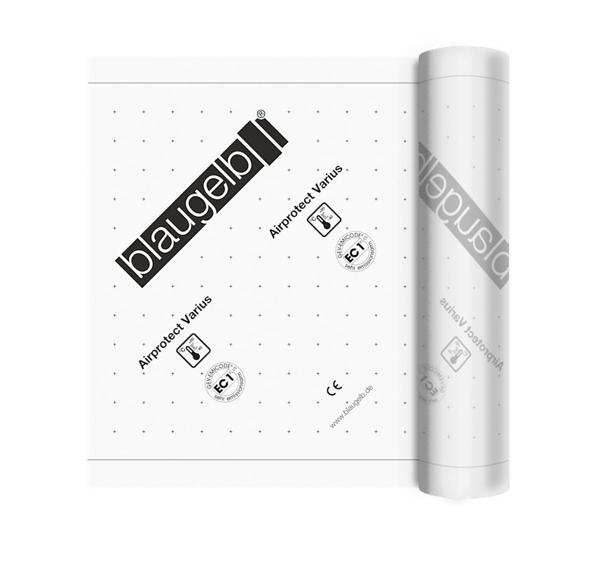 Die blaugelb Airprotect Varius ist eine diffusionsfähige, feuchtevariable und luftdichte Dampfbremse, die sich ideal für den Einsatz im Altbau, bei Sanierungen sowie beim Innen- und Dachausbau im Neub