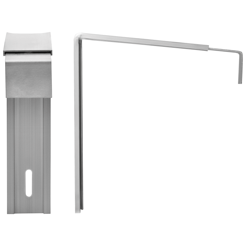 Zweiteiliger blaugelb Thermohalter aus Aluminium, bestehend aus dem Grundkörper zur Befestigung am Mauerwerk und dem Einschubwinkel zur variablen Anpassung der Mauerwerkdifferenzen. Der blaugelb Therm