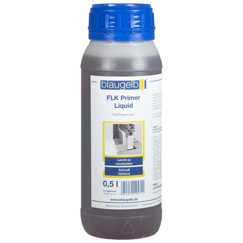 Der blaugelb FLK Primer Liquid wird als Grundierung und Reparaturprimer zur Ausbesserung, Anbindung und Aktivierung bei nachträglichem direktem Auftragen des blaugelb FLK Liquid auf demselben Material
