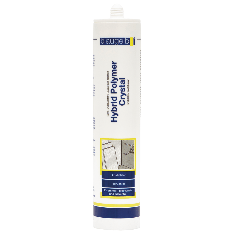 Der blaugelb Hybrid Polymer Crystal ist ein einkomponentiger, dauerelastischer Dicht- und Klebstoff, der kristallklar aushärtet. Auf der Basis eines Hybrid-Polymers konzipiert, weist die Rezeptu