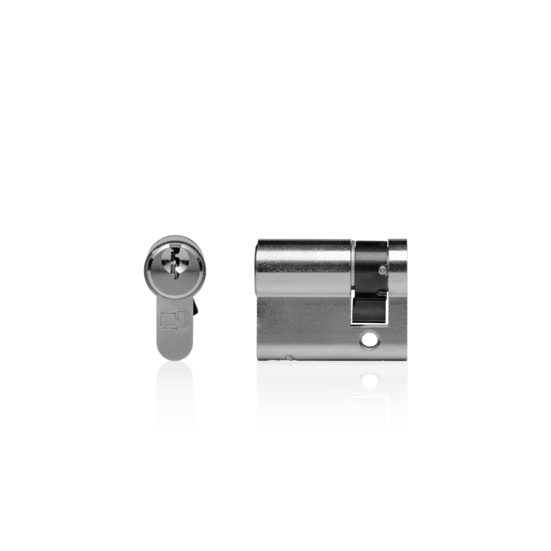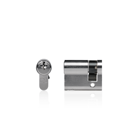 Die blaugelb Profilhalbzylinder PHZ 1758 6S sind aus Messing vernickelt und weisen ein 6-stiftiges Normalprofil mit einem parazentrischen Schlüsselprofil für Einzelschließungen auf. Die Zylinder sind