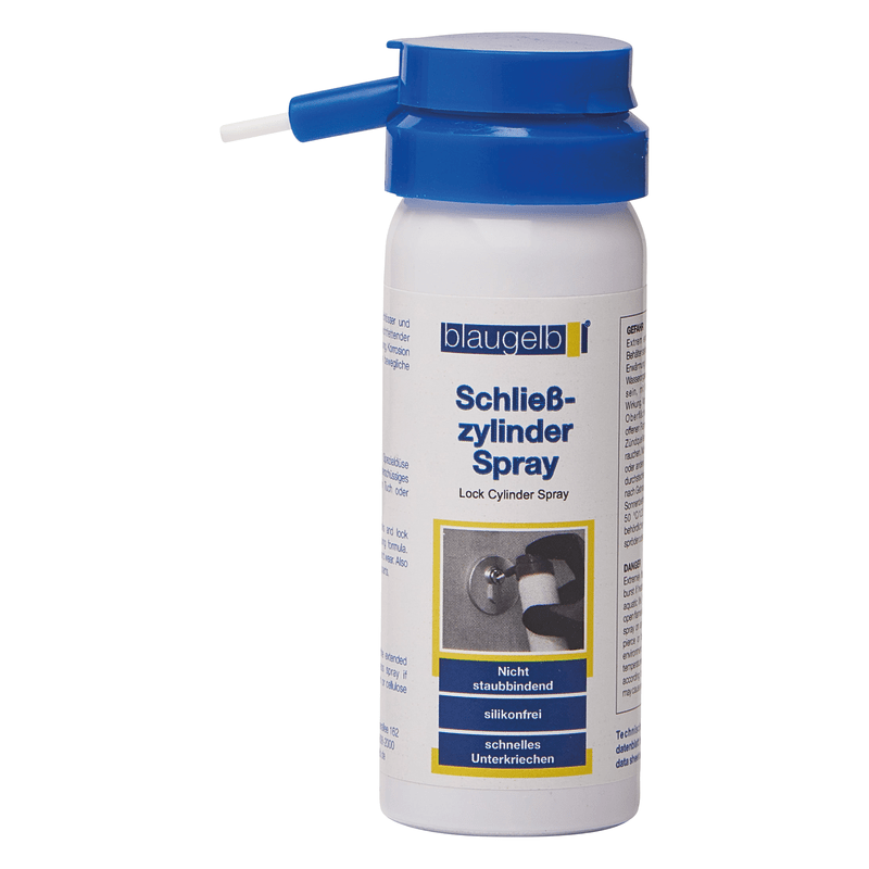 In der handlichen 50 ml Spraydose ist das blaugelb Schließzylinder-Spray der ideale Begleiter im Produktions- und Montagebereich. Mit der Verlängerung der Sprühdüse wird eine punktgenaue Anwendung ganz einfach. Im Winter sorgt das blaugelb Schließzylinder-Spray für vereisungsfreie Schlösser von Außentüren und PKW-Türen.