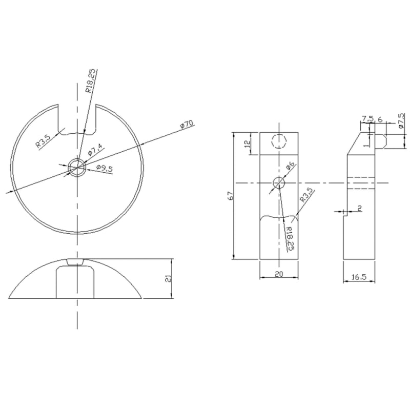 Unterlegplatte für den blaugelb Türpuffer 67 x 21 mm aus hochwertigem Edelstahl fein matt.