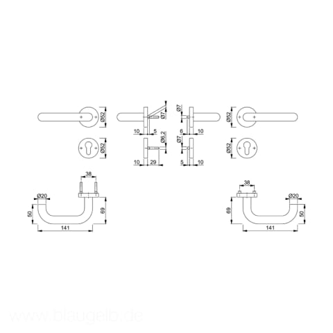 Die blaugelb Drückergarnitur ZT/DGT FS U-Form PZ Klasse 4 ist für Feuer-, Rauch- und Fluchtwegtüren mit erhöhtem Sicherheitsanspruch in puncto Feuerschutz nach DIN 18273 und für den Objektbereich nach