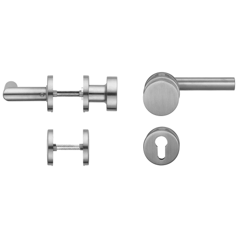 Die formschöne, elegante Wechselgarnitur ZT/KGT 90°-Form PZ Klasse 3 ist in Edelstahl fein matt erhältlich. Die Garnitur wird mittels verdeckter, mitgelieferter Verschraubung befestigt.