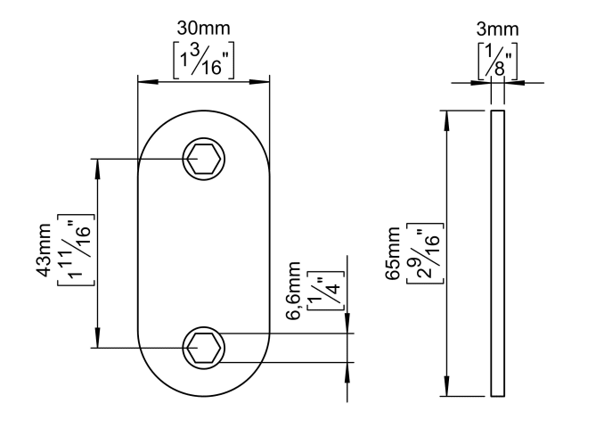 Knud Holscher Kollektion, Blindrosette, Oval 30x65mm, massive Rosette, cc 43mm. Hergestellt aus hochwertigem, rostfreiem Edelstahl AISI 316, der vor starker Korrosion schützt. 20 Jahre Garantie.