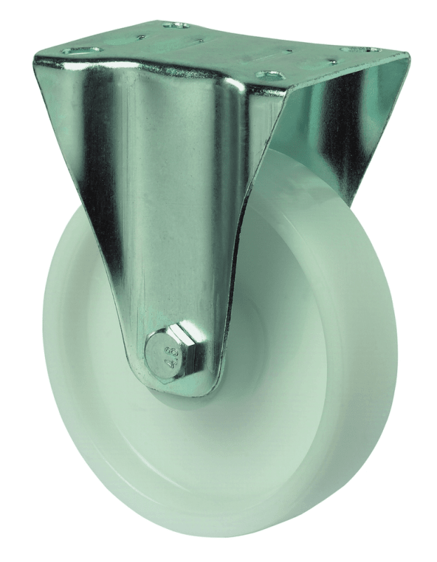Eigenschaften: • Gabel aus Stahlblech • verzinkt-chromatiert • zweireihiger Kugelkranz im Gabelkopf • Radkörper & Lauffläche: Kunststoff • Rollenlager: Ø 58 und 65 mm Gleitlager Technische Daten: • Radbreite: 30 mm • Plattengröße: 105x85 mm • Schraubloch-entfernung: 80x60 mm • Schraubloch-durchmesser: 11 mm • Ausladung: 36 mm