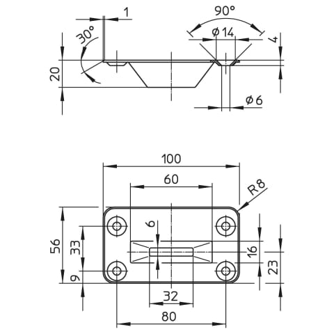 Bodenschließmulde aus Edelstahl zur Verriegelung der unteren Treibriegelstange 9647 oder 9656.