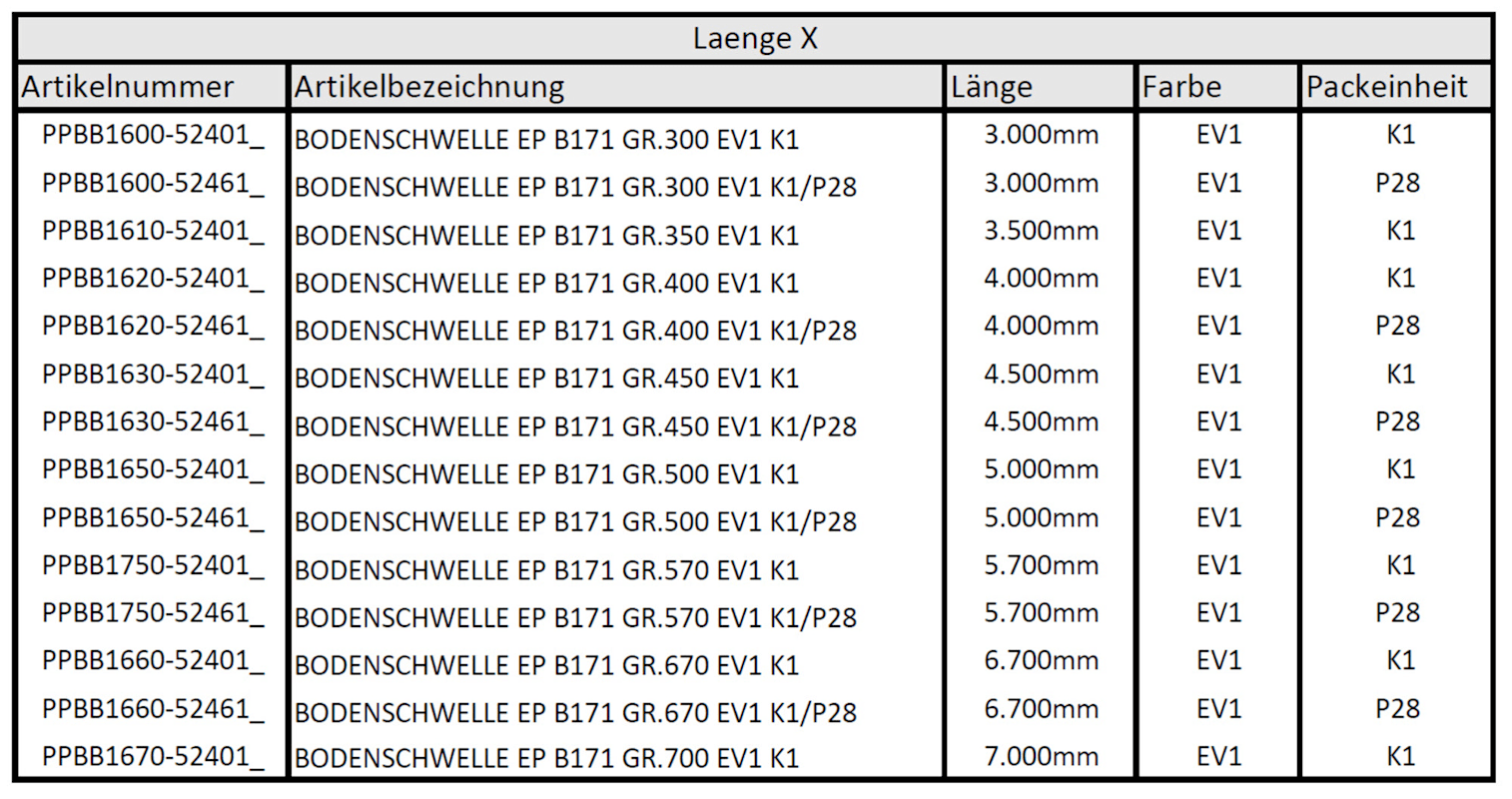BODENSCHWELLE EP B171 GR.450 EV1 K1 PPBB1630-524011