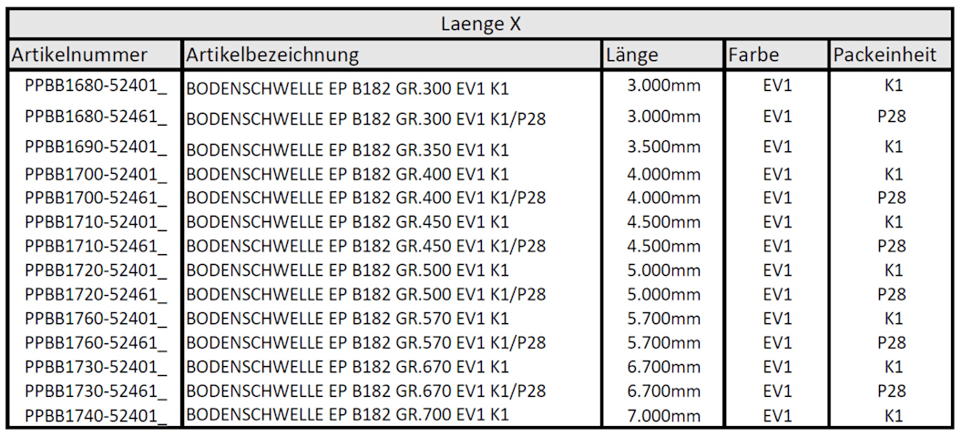 SIEGENIA Bodenschwelle Eco Pass B182; Material: Aluminium; Einsatzbereich: Hebeschiebe; Basis: Bodenschwelle; Größe: 700; Ergänzung: Rahmenteil; Fensterwerkstoff: Holz; Gesamttiefe: 182mm; Gesamthöhe:
