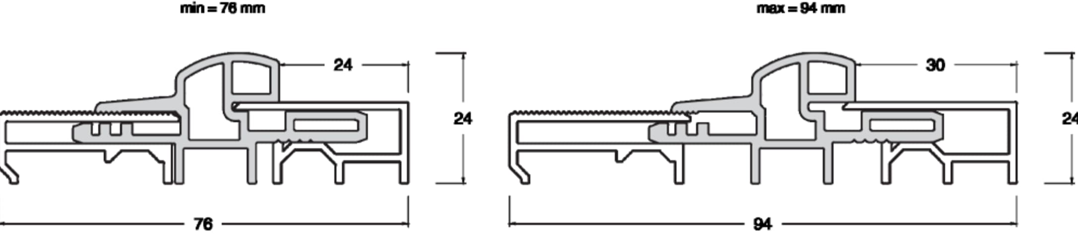 Bodenschwelle Transit ausziehbar mit thermischer Trennung S=76-94 H=24 L=5.000 silber F1