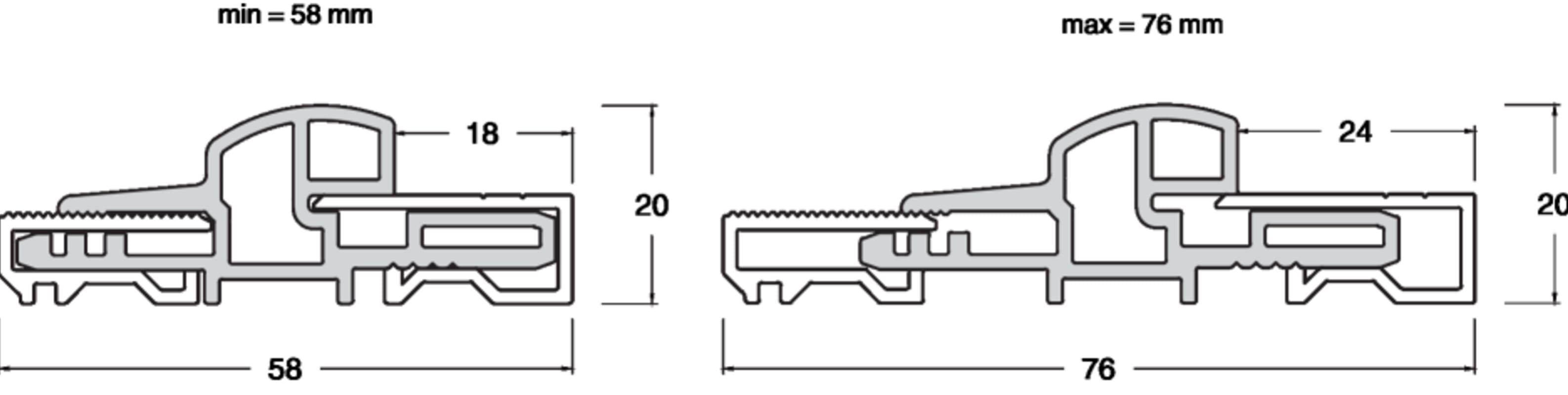 Meesenburg Artikelbezeichnung: BODENTÜRSCHWELLE TRANSIT AUSZIEHBAR MIT THERMISCHER TRENNUNG S=58-76MM, 457132