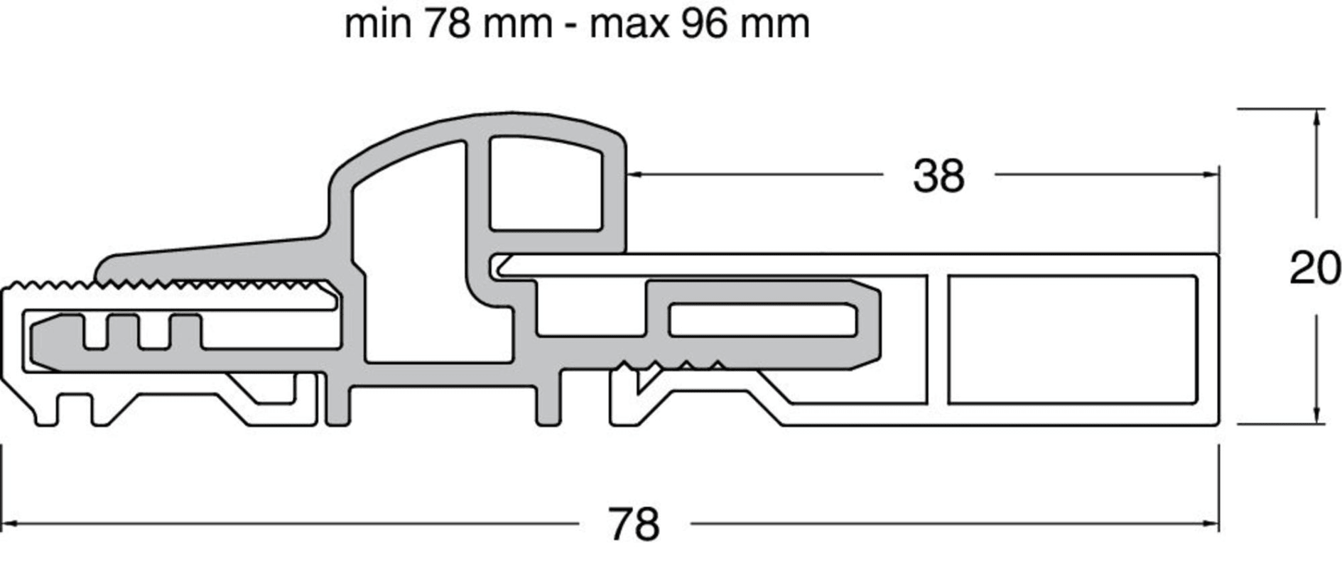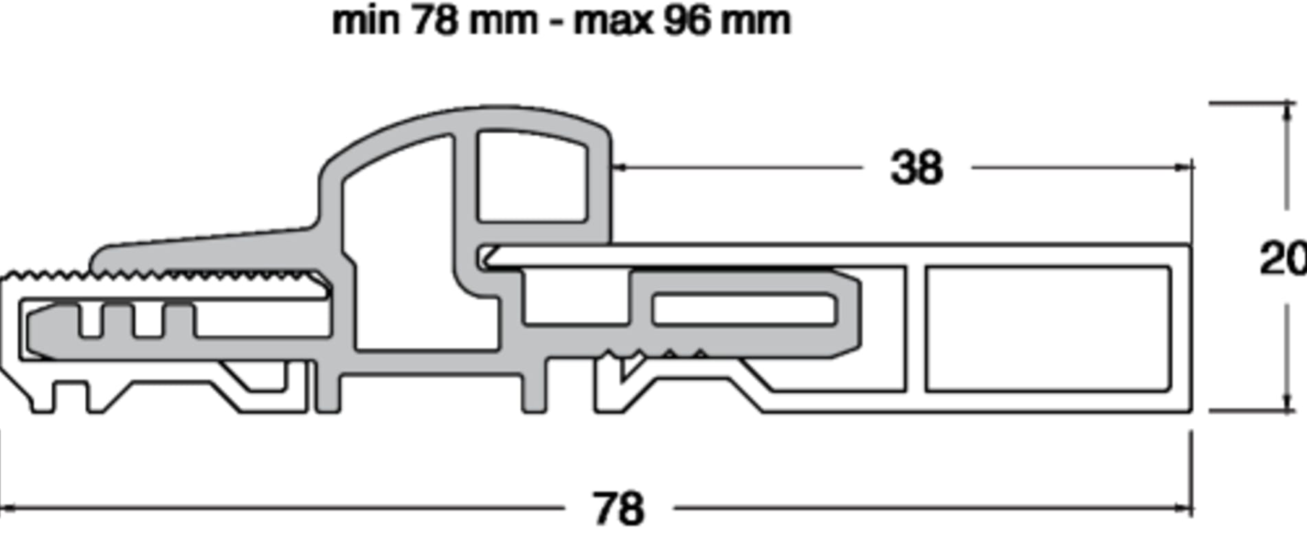 Bodenschwelle Transit ausziehbar mit thermischer Trennung S=78-96 H=20 L=5.000 silber F1