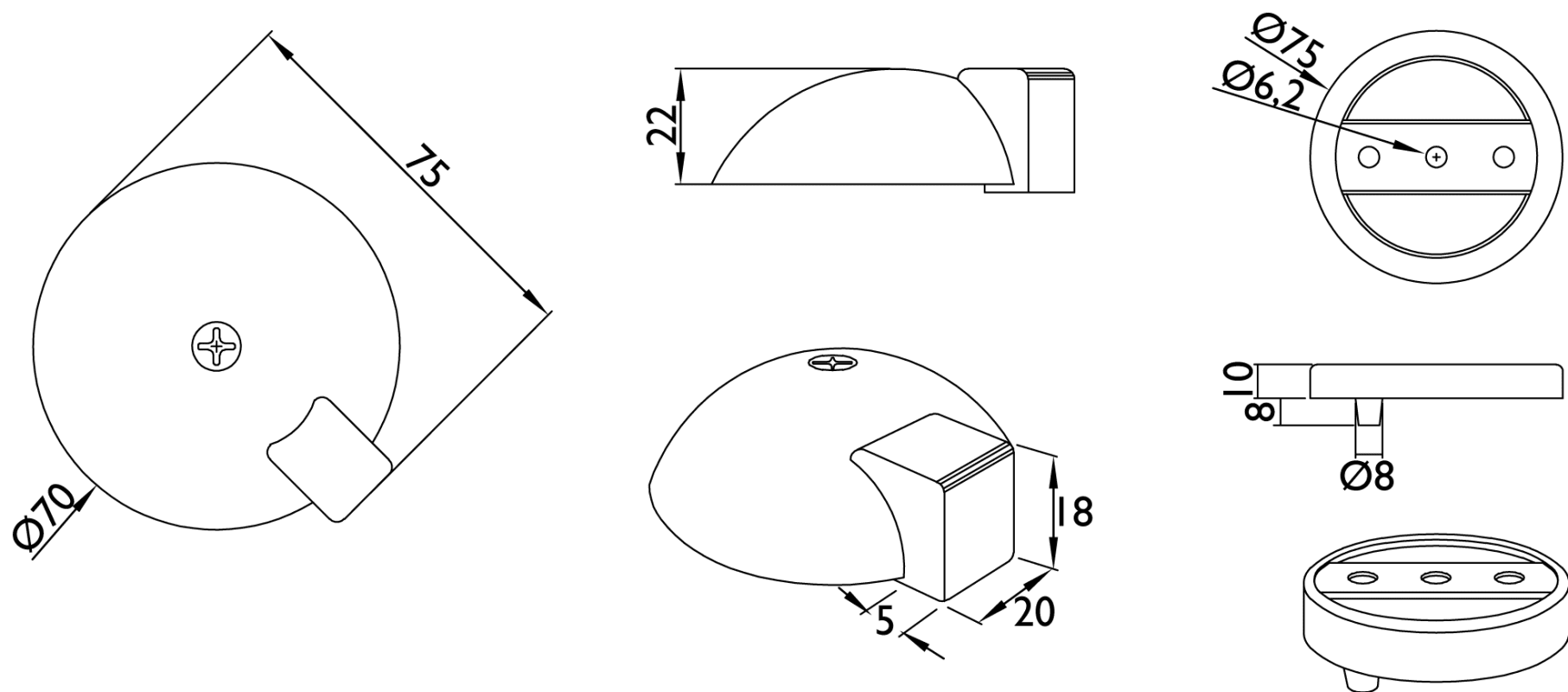 Bodentürstopper 3699 TS, Flachform Ø 70 mm, Höhe 22 mm, mit Holzschraube 6 x 60 mm, Dübel Ø 10 mm, Oberfl. 60 (Edelstahl matt)