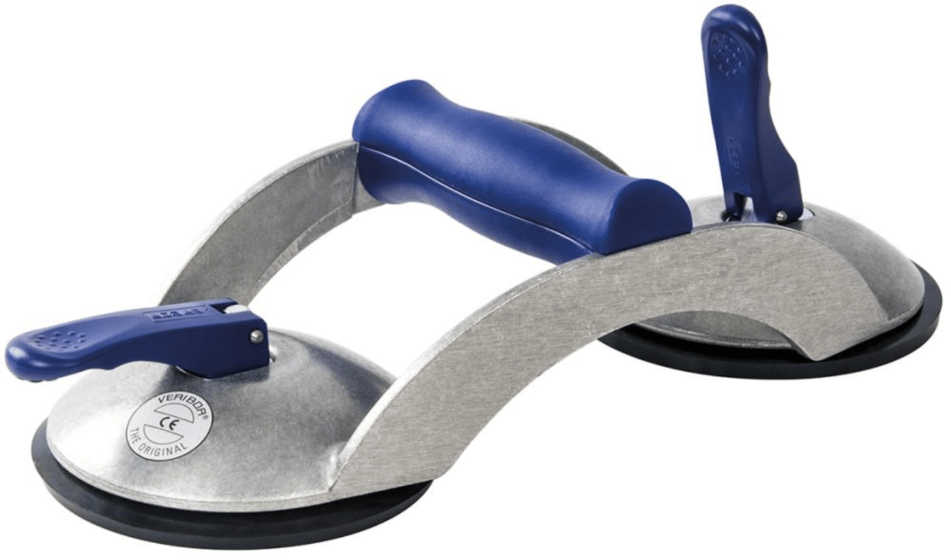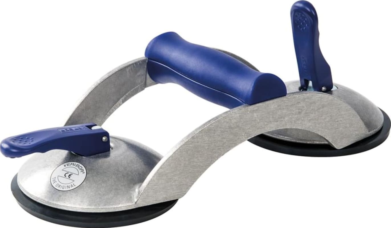 2-Kopf-Saugheber Veribor® blue line, Modell B00 602.0BL • 2-Kopf-Aluminium • Griff mit rutschfester Ummantelung • Tragrichtung parallel • Tragkraft bei doppeltem Sicherheitsfaktor • Geeignet für Glas