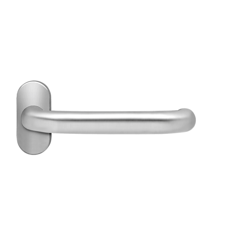 Feuerschutzdrücker mit Ovalrosette, Edelstahl matt , Griffdurchmesser 22 mm, rechts und links verwendbar