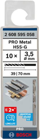 BOSCH PRO 10 METALLBOHRER HSS-G DIN 338 3,5X39X70MM 2608595058