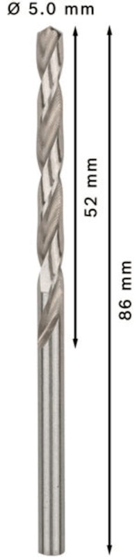 BOSCH PRO 10 METALLBOHRER HSS-G DIN 338 5,0X52X86MM 2608595062