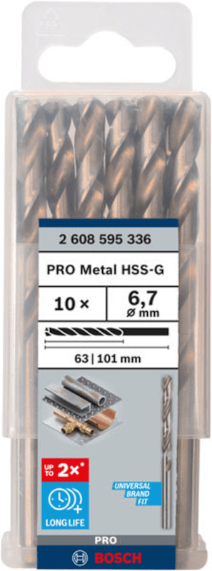 Meesenburg Artikelbezeichnung: BOSCH PRO 10 METALLBOHRER HSS-G DIN 338 6,7X63X101MM 2608595336