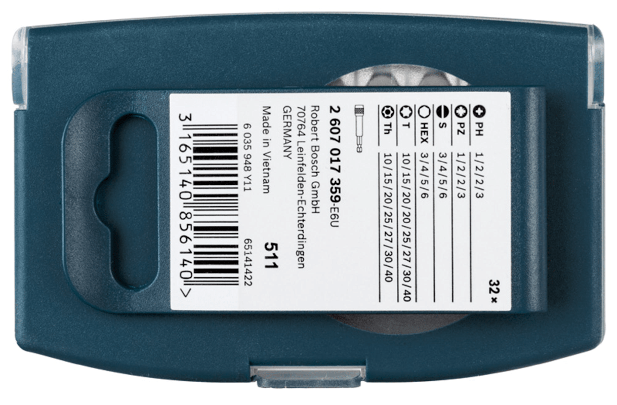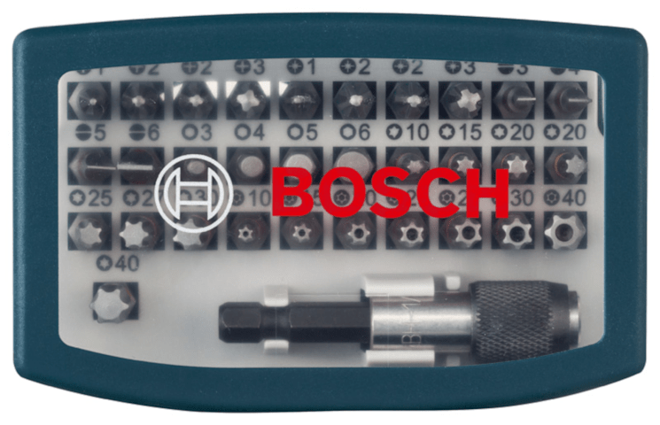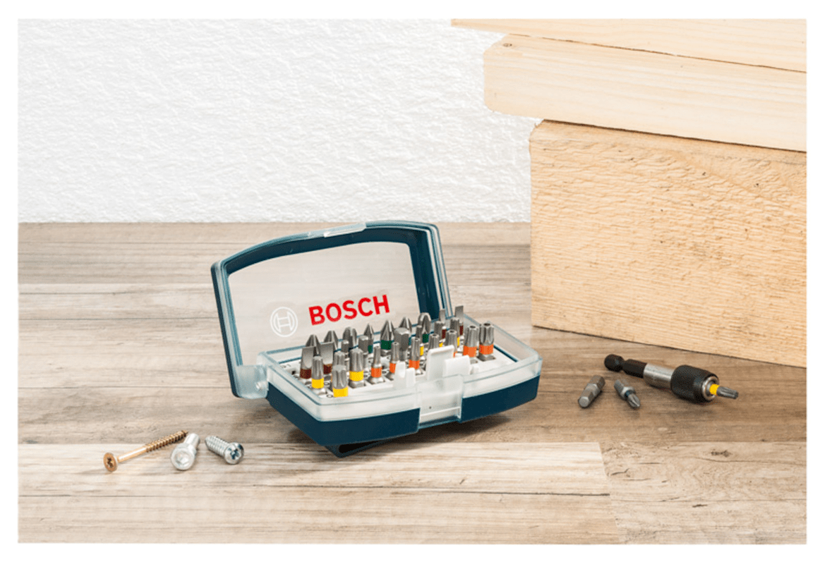 32tlg Schrauberbit Set blau. 32-teiliges Bosch-Schrauberbit-Set mit Farbcodierung, blaue Version