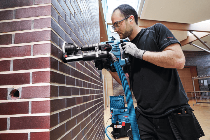Systemzubehör GDE 16 Plus, Die Staubabsaugung GDE 16 Plus Professional ist Boschs Lösung für nahezu staubfreies Bohren mit SDS plus. Ihre optimierte Form ermöglicht sauberes Arbeiten, reduziert die Reinigungszeiten und erhöht die Sicherheit für den Anwender. Ihr SDS plus System erlaubt eine schnelle und einfache Befestigung an SDS plus Werkzeugen mit nur einem Klick. Außerdem wurde sie für den Einsatz mit dem Bosch Click & Clean System konzipiert, was für äußerst bequeme Verwendung sorgt. Sie ist mit allen 2-kg- und 3-kg-Hämmern von Bosch mit SDS plus System und 50-mm-Schaft kompatibel.