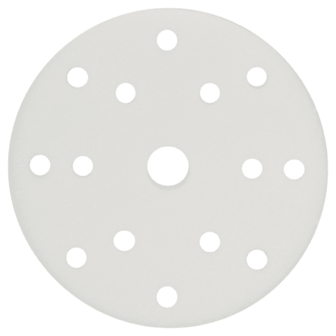Der 8-Loch Adapter dient zum besonders feinfühligen Arbeiten als zusätzlich dämpfende Schicht beim Schleifen von Konturen und gewölbten Oberflächen. Er verfügt über 8 Staubabsaugungslöcher.
