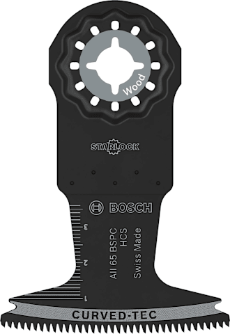 Curved-Tec Blatt für kontrollierte und saubere Tauchschnitte Das AII 65 BSPC Tauchsägeblatt ist ein langlebiges Multifunktionswerkzeug für Profis aus verschiedenen Gewerken, die saubere und präzise breite Tauchschnitte in Hartholz und Weichholz, Platten und Möbelkomponenten ausführen müssen.