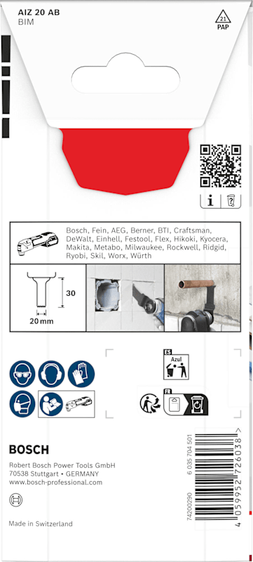 Bi-Metall Blatt: Kombiniert harte Zähne mit flexiblem Blattkörper Wir haben das Sägeblatt AIZ 20 AB für Renovierer und Installateure entwickelt, die feine Schnitte in Holz, Holzverbundwerkstoffen und Nichteisenmetallen ausführen müssen.