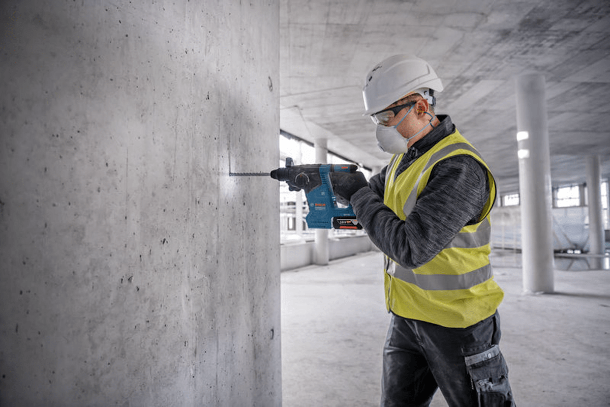Akku-Bohrhammer mit SDS plus GBH 18V-24 C. Der GBH 18V-24 C Professional ist ein Allrounder aus dem Bosch SDS plus-Akku-Bohrhammer-Segment – perfekt für den täglichen Einsatz. Er ist mit einem bürstenlosen Motor ausgestattet und bietet mit KickBack Control und Vibration Control höheren Verletzungsschutz für den Anwender. Sein HMI-Display informiert bequem über den Akkustatus und sonstige anwenderrelevante Hinweise. Sein eingebautes Bluetooth Connectivity-Modul erlaubt eine schnelle und einfache Verbindung mit der Bosch Toolbox App für individuelle Einstellungen. Er ist kompatibel mit Boschs in sich geschlossenem Staubabsaugsystem GDE 18V-16 Professional, das mit nur einem Klick am Bohrhammer befestigt werden kann. Der GBH 18V-24 C Professional eignet sich zum Bohren und Meißeln in Holz, Metall, Beton und Mauerwerk. Er ist mit allen Akkus und Ladegeräten aus dem Bosch Professional 18V System kompatibel. Außerdem mit Constant Speed, Electronic Motor Protection (EMP), LED-Licht, Rotation Control Clutch, variabler Drehzahl und Vario-Lock. Zusatzhandgriff (2 602 025 141); Tiefenanschlag (1 613 001 009); Reinigungstuch (1 619 200 413); Karton